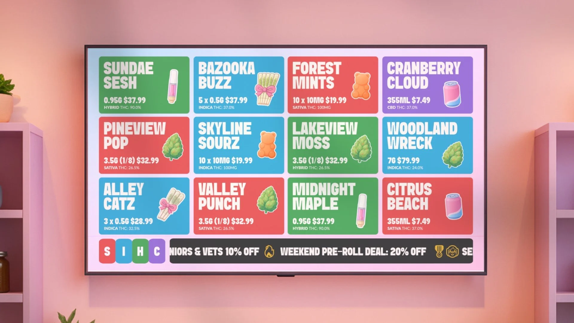 Custom, handcrafted visuals for cannabis shops and dispensaries—menus, promos, and social content designed for your store.